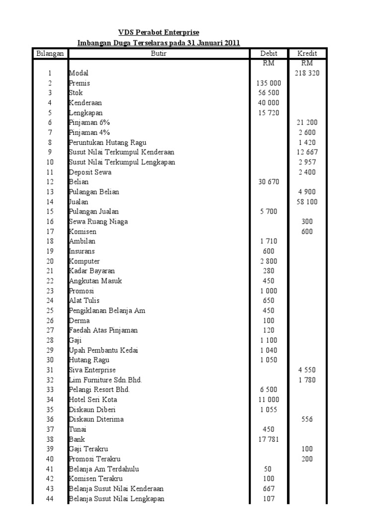 Mereka disenaraikan di bahagian kiri di bawah. Imbangan Duga digunakan untuk. 1 Apakah definisi Imbangan Duga a Merupakan senarai baki-baki akaun dalam lejar b Menunjukkan prestasi sebuah perniagaan c Menunjukkan kedudukan kewangan aset dan.